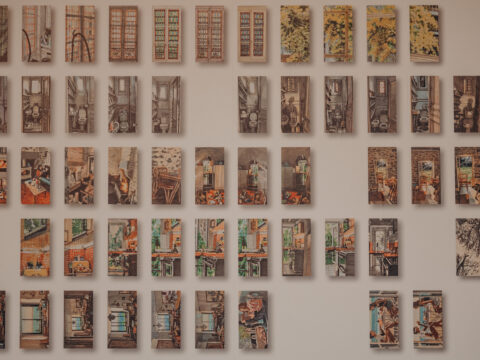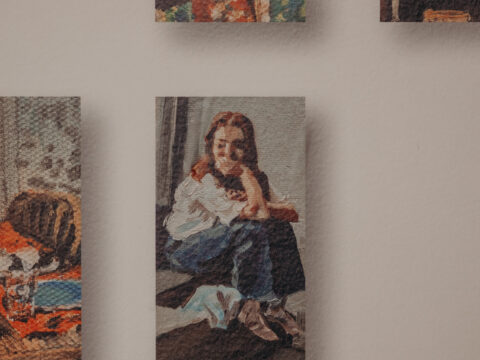 Anne Sedel peint depuis 2016 les « souvenirs de sa vie sur terre ». Ses formats ont la taille d’un téléphone portable tel que «Ariane aux rochers» et «Katia à la Petite Corbière». Elle a peint plus de mille lieux qu’elle aime : ses enfants, son atelier, les sanitaires et beaucoup de fenêtres. Ses miniatures de la vie quotidienne gardent précieusement l’essentiel à ses yeux. Elle les a rassemblées, ponctuées de respiration, pour créer un papier peint réunissant ses « portraits d’intérieurs ».