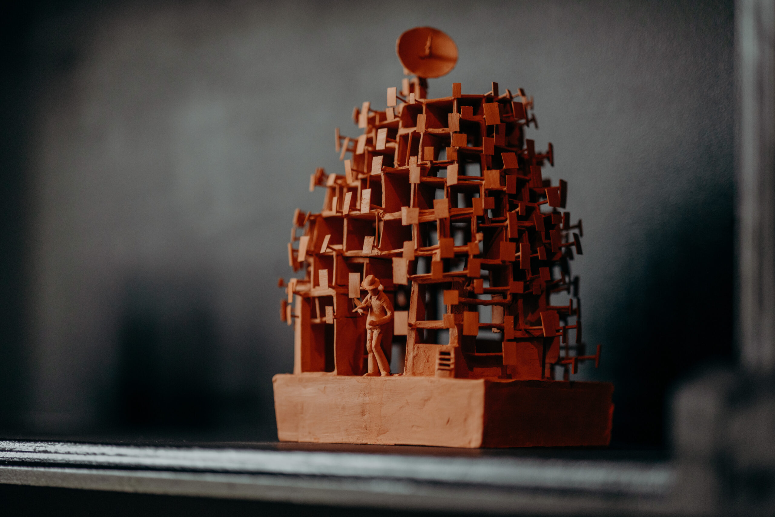 Souvent composées d’éléments architecturaux et de personnages, ses miniatures en terre cuite racontent des histoires directement inspirées d’images intérieures. Fred Biesmans crée des dioramas qui nous invitent à plonger dans son univers réduit.